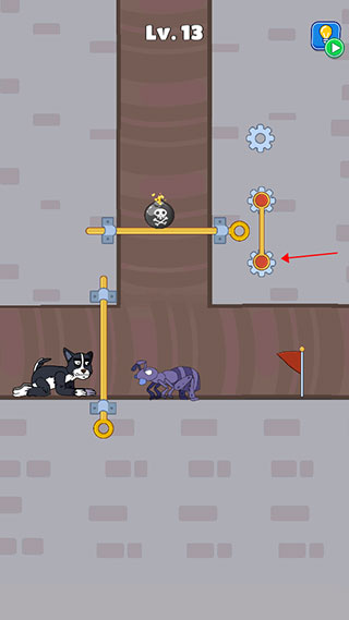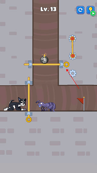 1、下载后打开进入游戏,我们以13关为例,首先先把这个拉杆往上移动