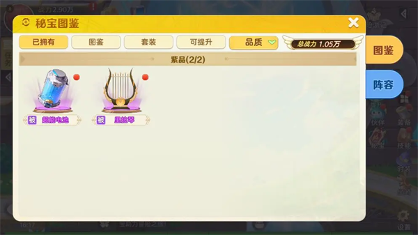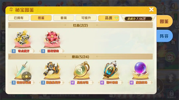 打开【秘宝】后,冒险者们可以看到自己拥有的秘宝。