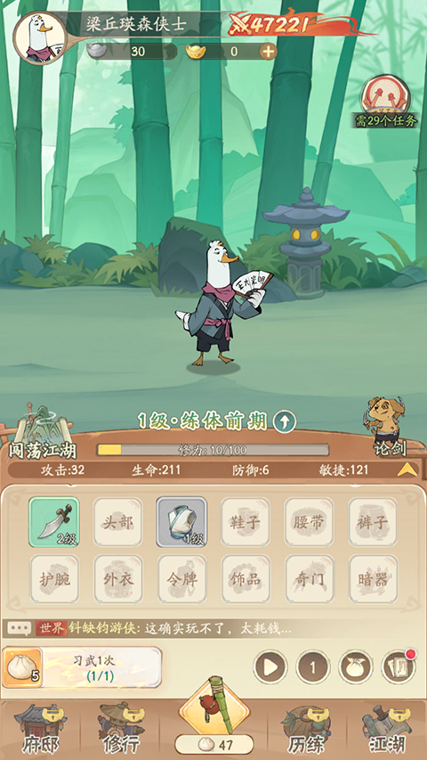 3、通过不断提升习武等级,玩家可以大幅提高后续获取装备的品质,为角色成长打下坚实基础。