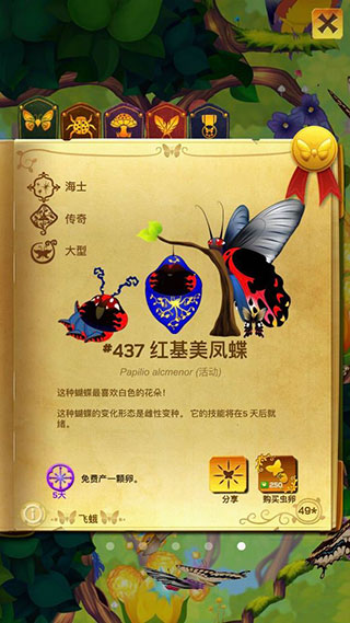 4、各种各样详细的蝴蝶图鉴,帮助玩家认清楚蝴蝶。