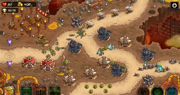 v1.16.06王国保卫战4内置mod菜单版继承了系列游戏一贯的精美风格,不同的塔、兵在不同等级都有着不同的形态,地图上的每一处战斗都呈现得十分精彩。在前三作之中,箭塔、魔法塔、兵营塔和火炮塔这四种类型分别对应着物理攻击、魔法攻击、防御、控制,这一核心设定在新作里仍然没有改变。同时,我们可以从炼狱法师、黑暗骑士、回旋哥布林等十余种塔中选择5种,去攻击超过35种敌人,丰富的元素让战斗有了更多可研究之处。在每一局中,你可以不断升级防御塔,到第四级的时候可以选择每个塔的特殊技能。是用岩浆裂隙造成AOE伤害,还是把敌人传送回路径上?都要根据战场情况随机应变!