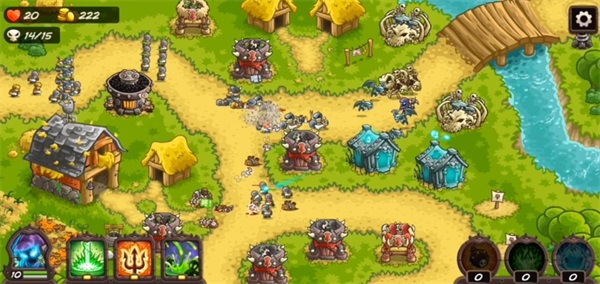 前期:利用死灵墓的高性价比快速出石像,利用死灵墓的法穿来打伤害,用初级箭塔沿途持续消耗敌军。