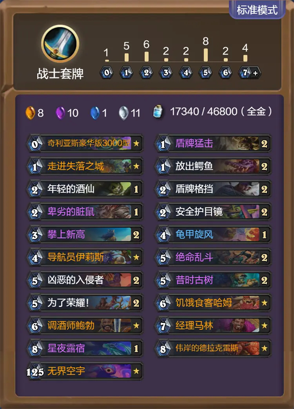 任务战是一套补丁后最稳定的控制类卡组,解牌和回甲手段丰富,携带年轻的酒仙的构筑可回手脏鼠,鲍勃或无界空宇;伊莉斯地标优先选择发现法术、突袭和复制,可通过复制哈姆破坏对手的组件;待任务完成后尽量在牌库剩余卡牌较少时再打出,必要时需要防止任务奖励被对手的鲍勃买走而配合乱斗、空宇、盾猛等手段自己解掉。