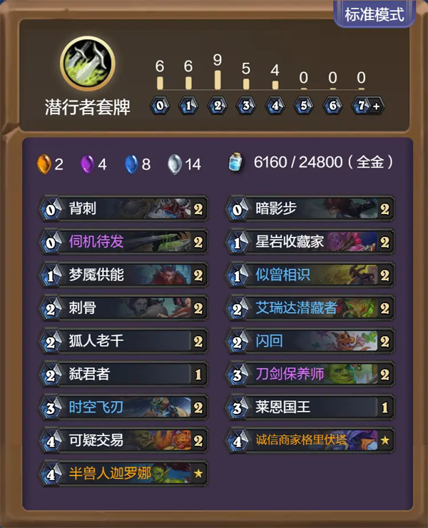 伺机待发,星岩收藏家,狐人老千,闪回,艾瑞达潜藏者。面对前期有场面的对手,可留背刺触发连击。