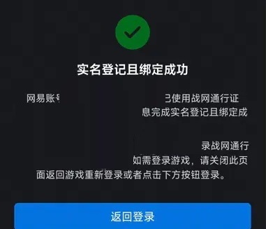 8.网易账号已使用战网通行证的信息完成实名登记且绑定成功,点击返回登录回到战网通行证登录页面,使用网易账号登录即可。