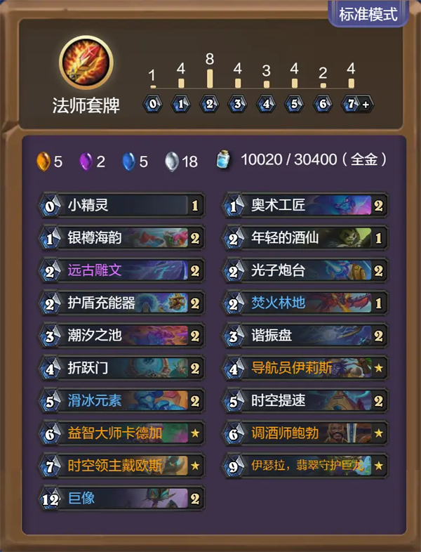星灵法在补丁后目前也在标准模式中占据着一席之地,在伊莉斯与戴欧斯加入构筑后,既提升了前中期的抗性又为卡组带来了极高的斩杀上限。理想情况下,配合折跃门与光子炮台的减费效果,可以在8-9费阶段实现配合戴欧斯的高额斩杀。