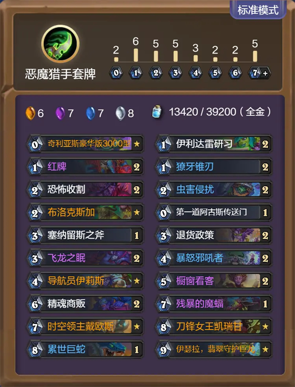 常规留牌:獠牙锥刃,恐怖收割,虫害侵扰,暴怒邪吼者。先手可保留飞龙之眠,后手可直接保留精魂商贩。
