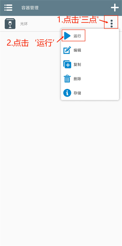 7、点击“…”菜单,选择“运行”进入。