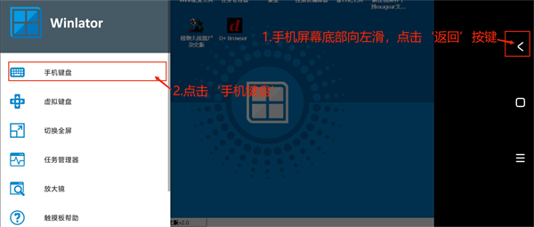 15、底部左滑点“返回”,再调出手机键盘操作。