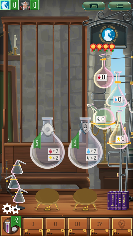 每种药水的处方需要4到7种元素。它们是由元素自身上的颜色图标所表示的。在你的药水中加入正确颜色的元素:当所有的图标都被移除后,药水就完成了。