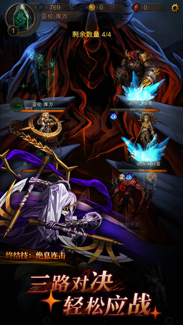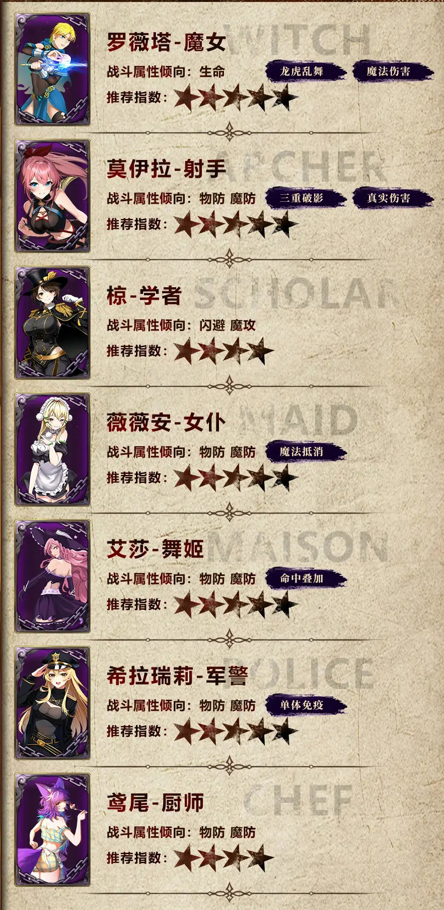 上阵4人:吸血、吸魔提升,命中后造成敌方自残,流失生命。