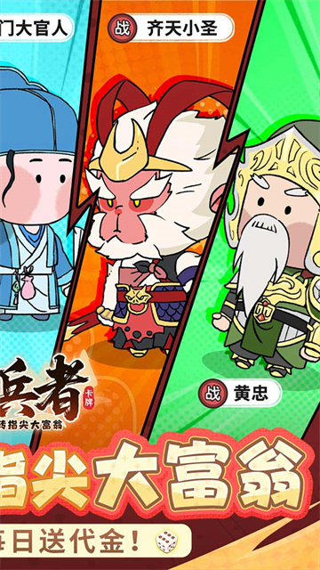小小兵者(1折大富翁内置免费版)是一款Q版大富翁卡牌游戏,游戏里可以通过掷骰点数前进获取各种道具,同时会触发各种奇遇、随机小游戏,为广大玩家还原童年欢乐时光,全新养成英雄、法宝、装备、宝石、运势、神石疯狂提升战力,还可以前往神秘皇陵古城摸金,领豪华养成材料,体验多重试炼以及花样跨服竞技玩法,书写属于自己的传奇故事!