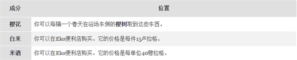 获得灵药卷轴只是第一步。如果你想发酵净化药,还需要弄到樱花、白米和米酒,这些都是净化灵药的成分。