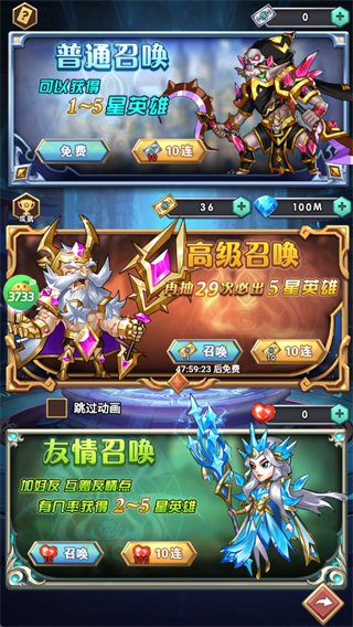 优先用送的钻石走高级召唤,普通/友情召唤做补充,快速凑齐强力阵容。