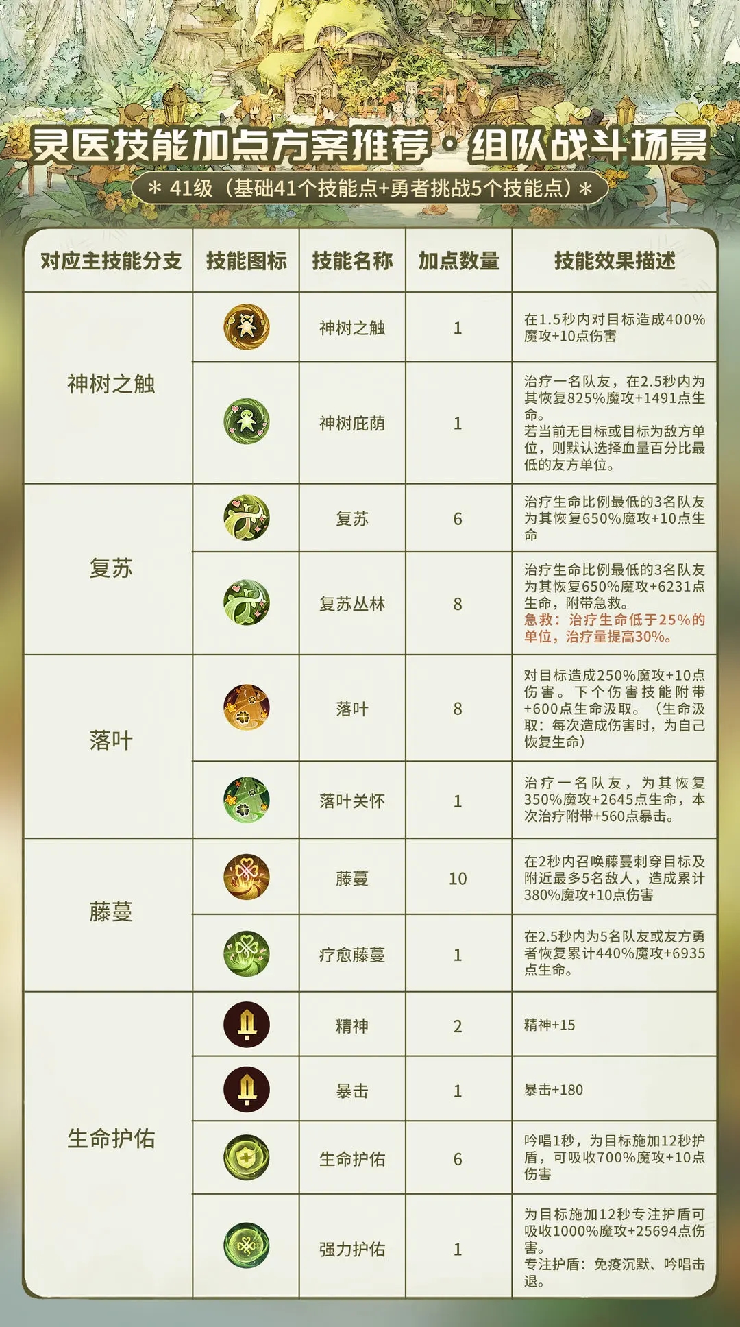 灵医核心是治疗辅助(奶人)的职业,比较考验团队意识,团队作战中需要帮助队友回复血量,保障生存能力,在早期的养成过程中优先追求战力评分,其次追求治疗能力(主要关联精神、魔法攻击、精准三个主要属性)。