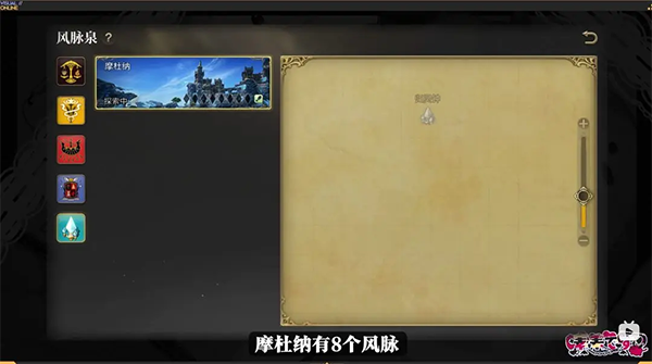 摸完以后,在风脉泉界面的地图上还会显示已完成的风脉泉的位置,下面是目前测试版本中全地图的风脉位置!大家找风脉时可以直接对照右边地图中缺少的位置就可以轻松搜集啦!