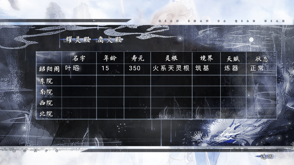 2、刷子女容貌值,立绘与性格:在6岁测灵根的选项处存档就可以刷容貌值与幼年立绘了,性格需要去后山与子女闲聊才能看见。成年立绘的刷法同理。