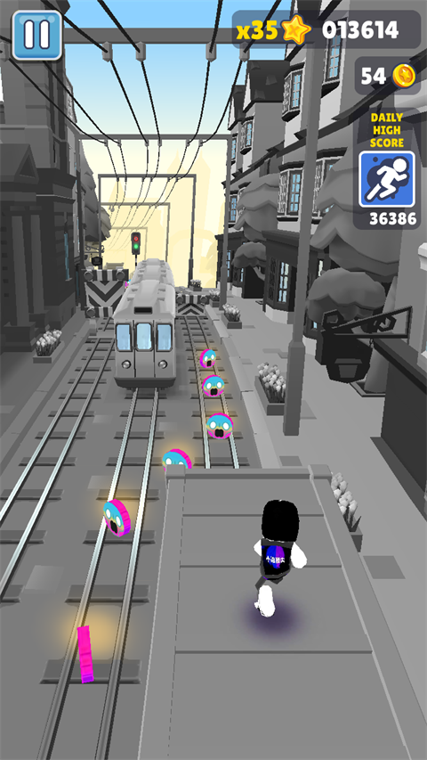 地铁跑酷整个游戏的画面清晰度比较高,但是和原版相比,颜色变暗了一点点。