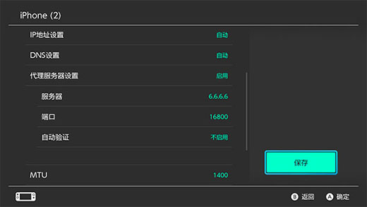 (1)先将代理服务器设置为启用,再根据加速成功后提示弹窗设置服务器和端口。 (tips: 请确保按照弹窗提示内容设置,否则可能导致Switch无网络