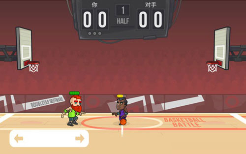 2、我们按住屏幕左下角的两个箭头可以控制角色移动,用手指按住屏幕右侧空白区域可以控制角色跳投,不过跳投的时候的注意一点,在主角跳到空中的时候就得放开手指,否者我们的角色是不会将篮球投出去的。
