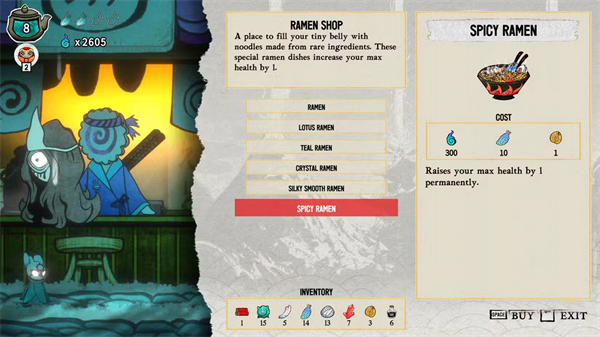 博可以在战斗间隙喝茶治疗,但你需要法力。魔力很少,治疗效果可能会很差。在樱花市,有一家茶馆可以提升魔力。另外,别忘了在樱市的拉面店,如果你找到所需食材,可以提升最大生命值。