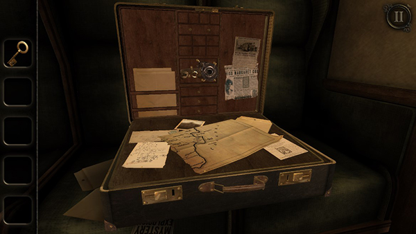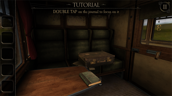 游戏开始时,你将置身于一个车厢内。首先,点击桌子上的日记本,查看其中的内容。随后,火车进入一段黑暗隧道,桌面上的木盒子会出现,双击木盒子以靠近并拾取一把钥匙。