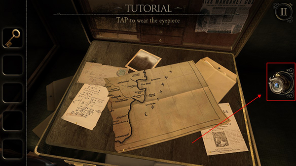 接下来,点击车厢内的行李箱,打开它并点击箱上的锁扣,将其滑动到一侧,露出一个隐藏层。拾取其中的护目镜。