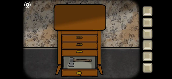 用钥匙打开最后一个抽屉,得到一把斧子。