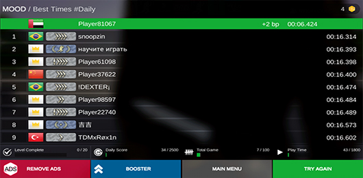 以最快的速度通过之后就能看到自己的成绩,在排行榜上与其他玩家相比较;除了平面之外最大的亮点就是各种高度的箱子,多加练习减少实战失误。