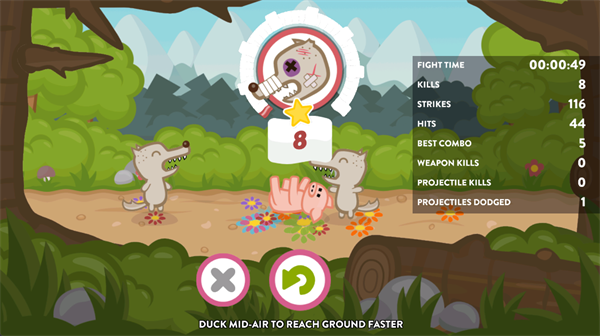 v1.1.73功夫小猪是一款充满刺激与趣味的2D格斗游戏,玩家操控小猪忍者在森林和街头竞技场中与成群的愤怒狼群展开殊死搏斗。通过滑动和点击屏幕,玩家可以挥拳、踢腿或使用敌人掉落的武器进行攻击,同时躲避火箭、破坏球等各种投射物。游戏节奏快速,考验玩家的反应力与操作技巧,并提供丰富的连招、动作电影般的战斗表现和多样化的敌人阵容,使每场战斗都独具特色。在充满幽默感的英雄小猪与狼群对抗中,玩家不仅能体验紧张刺激的格斗快感,还能解锁成就、统计数据和独特技能,享受极具娱乐性的动作挑战。
