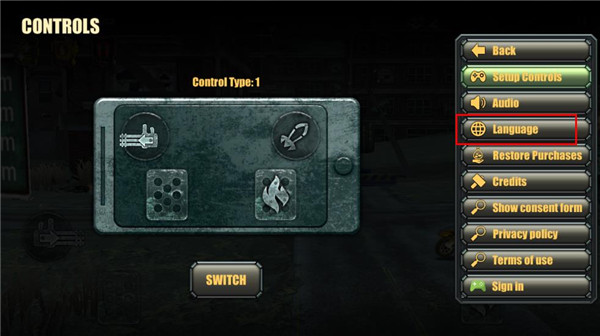 3、然后点击第四个language按钮,可进入语言设置菜单