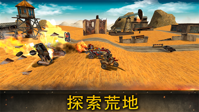 在末日后的沙漠废土驰骋和战斗。从自己居住的城市开始旅程。在疯狂而又单一的废土旅程中暴怒地横冲直撞摧毁掠夺者们的团队,得到他们的领土