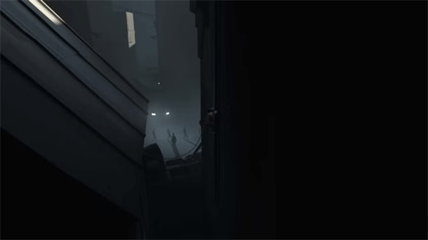 到达顶端后,向右走,穿过有鸽子的木板。看起来可能快要断了,但其实不会。走进窗户,进入看起来像阁楼的地方。你下面的地板会破裂,你会掉进一排空壳中。你得表现得像他们中的一员。继续排队。他们走的时候你就走,他们停下就停。你会达到两个矩形。进入第一个矩形时,你必须和其他空壳一起跳跃。第二条路你得先向左转,再向右转。这不必完美同步。成功完成后进入下一个房间。最终你会遇到一个带着狗的守卫。狗知道你和其他空壳不一样。守卫照亮你后,向右跑,从玻璃窗跳下平台。