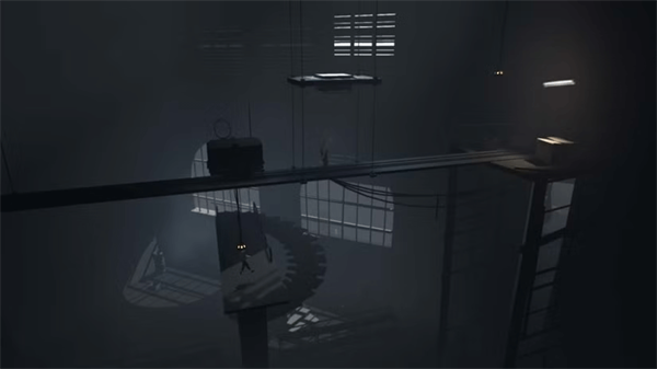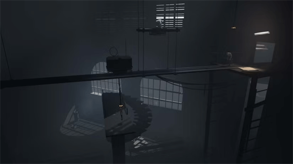 滑下倾斜的屋顶,但要小心聚光灯。被抓住就是立刻死。躲在管道的阴影下,保持不被发现。你需要在右侧转动曲柄才能降低笼子,但聚光灯会不断来回移动。从管道下方跑到曲柄,顺时针转几圈,等探照灯靠近时再回到管道下方安全处。这部分别急。很容易尝试多转一圈,或者在笼子完全放下前跳过去。只要等它完全放下再动手。