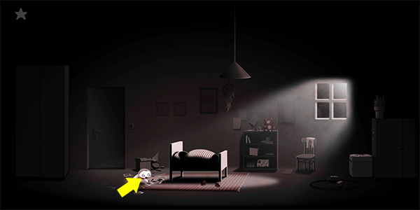 2、接着等他入睡后,游戏会自动开始切换场景,来到下方场景后,点击小人让他起床