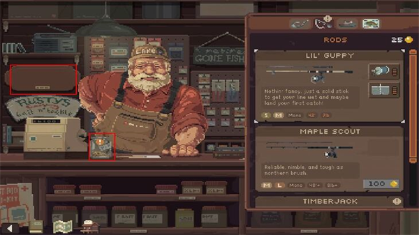 v17664抛竿放松(Cast n Chill)是一款温馨治愈的像素风格钓鱼模拟游戏,结合了休闲放置与主动操作的乐趣。你将探索包括湖泊、河流及海洋在内的16个精美场景,收集50余种从常见到传奇的各类鱼类。通过售卖渔获获取资源,不断升级装备,挑战那些在老拉斯蒂鱼饵店中流传的16种传奇大鱼。