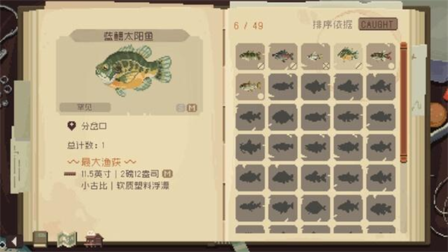 完成你的鱼类收藏,包括50+种常见、稀有和传奇的淡水和咸水鱼。