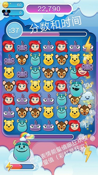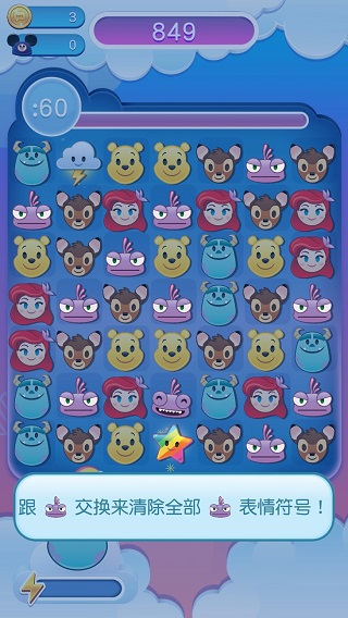 v74.0.0迪士尼表情包大作战是一款趣味消除类游戏,里面有超级可爱的经典迪士尼形象,其中各种搞笑的表情和经典消除玩法给玩家用户带来了非常愉悦的玩耍氛围。游戏既然是与迪士尼有关,那么自然而然像什么《小美人鱼》、《狮子王》、《灰姑娘》、Disney|Pixar 的《玩具总动员》、《海底总动员:多莉去哪儿?》等故事都将在这里出现,而我们玩家用户呢也是需要在这些故事当中收集到Disney和Pixar的表情符号角色和物品,赢取奖励,完成任务。游戏的玩法也很简单,与其他同类游戏不同的是,这里讲究的不是消除次数,而是时间,我们要在规定的时间之内快速消除三个或三个以上的表情包,或者是利用超强道具和联合攻击引爆游戏区域、执行任务、提高分数。