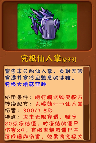 2、加入了如终极魅惑菇、究极幻灭大喷菇、雪球冰车僵尸等强力且有趣的新植物以及僵尸。