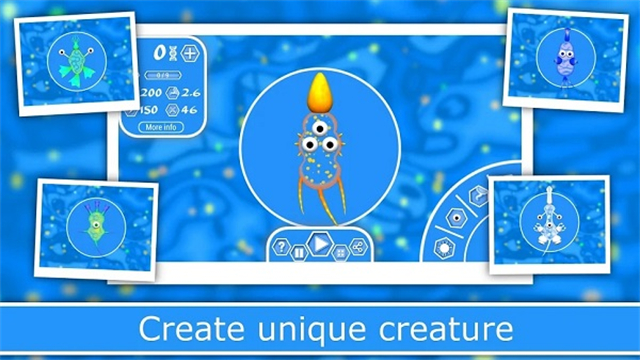 1、参与进化!使用一组灵活的设置,数十种不同的身体部位和许多颜色选项创建独特的生物。无数独特的组合;