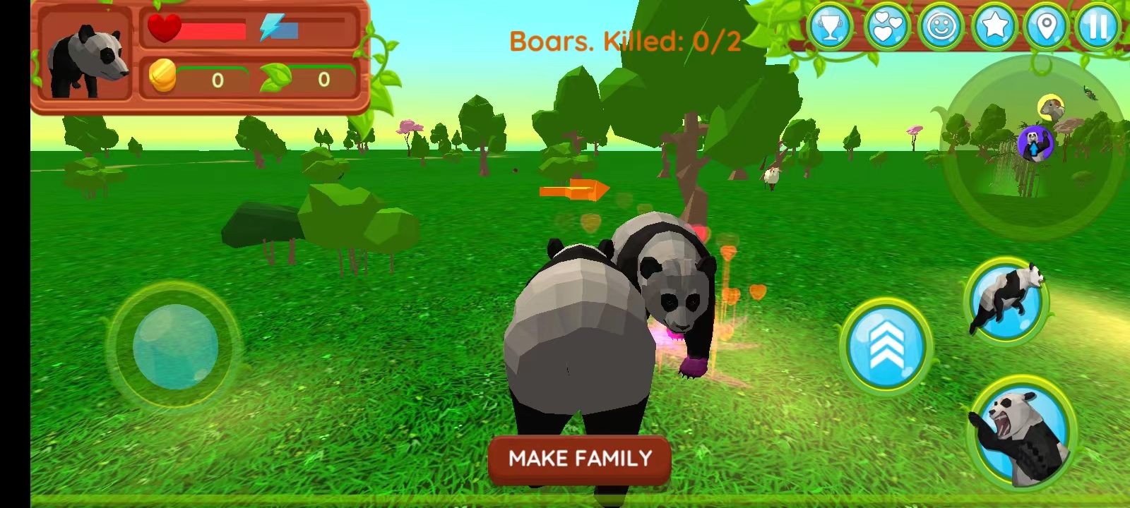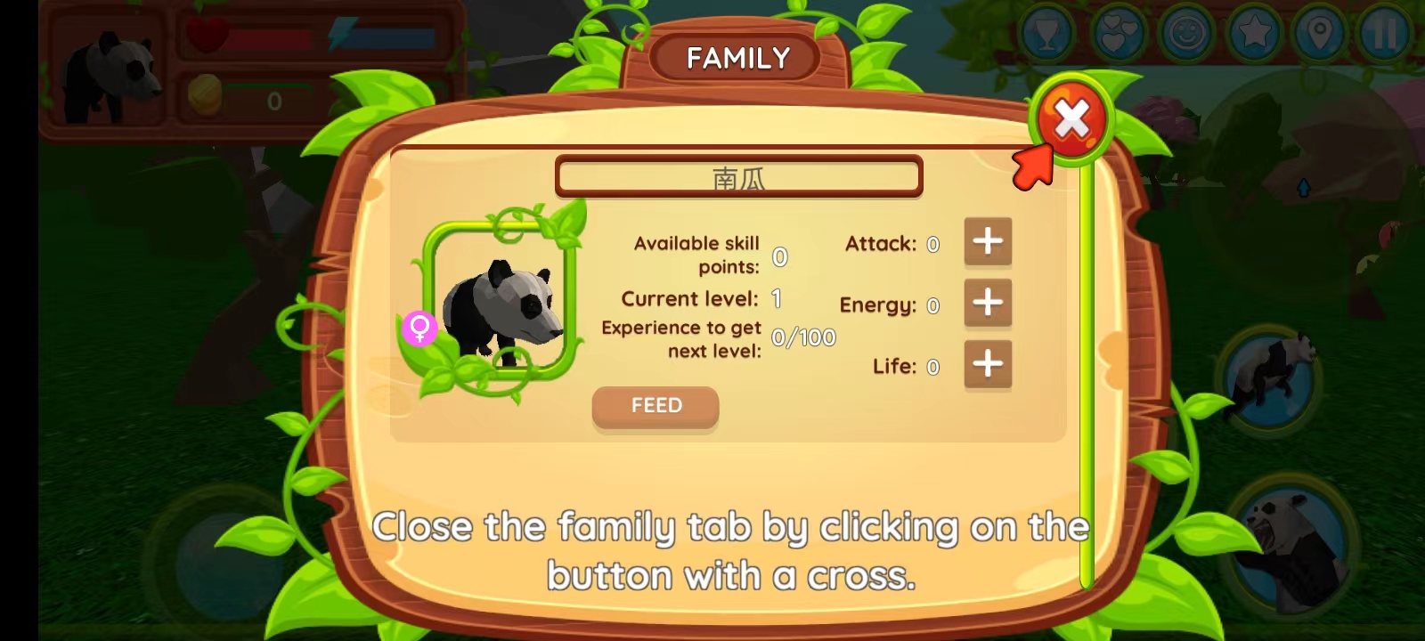 有机会立即改善家庭成员的个人特征以及影响家庭中所有熊猫的特征。不要忘记改进角色!获得完成任务和吃竹子的经验。获得等级后,角色可以将其花费在攻击点,能量或生命上。还有特殊技能,可让您提高速度,收集更多食物,获得更多资源以在游戏中采取行动等。