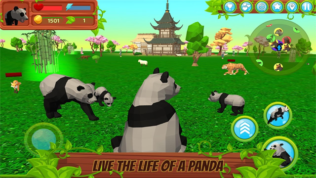 v1.055熊猫模拟器是一款有趣的休闲模拟类游戏,又叫Panda Simulator,3D效果逼真,操作简单,可以带给玩家不一样的游戏体验,在这里,玩家将操控着熊猫完成一系列的野外求生任务,开始冒险。当然在森林中独自生活很困难,因为森林里到处都是危险的捕食者。因此,您必须找到另外一只熊猫,组建家庭,而随着角色的发展,玩家还有机会制造幼崽,最多可以拥有4只小熊猫。