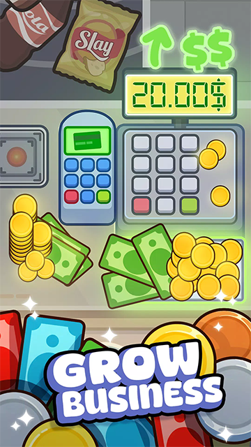将您的小杂货店打造成一个熙熙攘攘的超市。解锁并展示新产品——饮料、零食、新鲜食品——并保持库存充足,以吸引更多顾客。