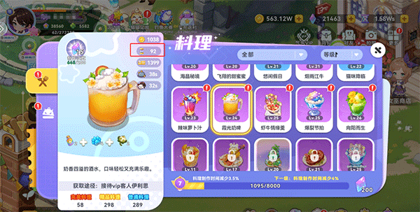 3、配置高经验值菜品-经验大师:食谱图鉴查看高经验值菜品,手动配置菜谱,餐厅经验值飙升~如何操作:图鉴→料理,查看菜品经验值,返回食谱→配置高经验值菜品;