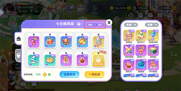 4、一键配置:我就躺平爱谁谁!无需纠结!系统提供"一键配置"功能。如何操作:自动根据当日流行风格+你当前拥有的食材数量,智能生成最优推荐菜组合。省时省心,秒速设置,躺着享受收益加成!轻松解压,专注美食!