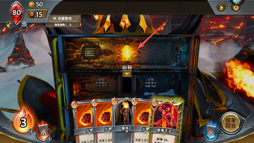 6、敌人一开始会在火车最下层,每回合都会向上移动一层。敌人到达顶层之后,就会攻击你的薪火!