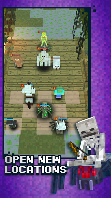 我的世界保卫村庄(CubeCraft: Merge & Battle)是一款结合了合成与策略的轻松休闲手游,在色彩明快的像素世界中,你的核心使命是守护菜鸟村,抵御敌人的持续进攻,通过合成相同的勇士、动物或骷髅角色,你可以创造出更强大的作战单位。我的世界保卫村庄游戏融合了即时战斗与回合布局的独特节奏,在每轮战斗开始前,你需利用有限的合成次数完成防御部署,每一次操作都至关重要。你需要用智慧和策略在有限的步骤内完成强力合体,构建坚不可摧的防线吧!