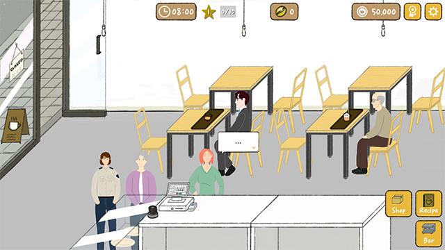 6、每次成功服务后都能获得收入,用这些收入不断更新设备、研发新品种咖啡,让店面焕发新活力