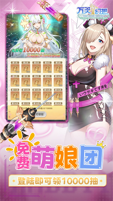 万灵幻想是一款策略卡牌放置手游,玩家上线即可领取免费1000抽,更有每日奖励、通关奖励、挂机奖励等多种福利,让你轻松畅玩这个异世界。万灵幻想画面精美,玩法丰富,作为一款卡牌手游,玩家需要收集千娇百媚的各类卡牌,根据卡牌英雄的特性针对性的培养,并根据其各自的羁绊进行阵容组合,打造专属你的美少女联盟。同时,万灵幻想还特别注重策略性,创新的加入了技能顺序设定系统,玩家可以自由进行布阵,通过技能的不同组合,形成最强战力。