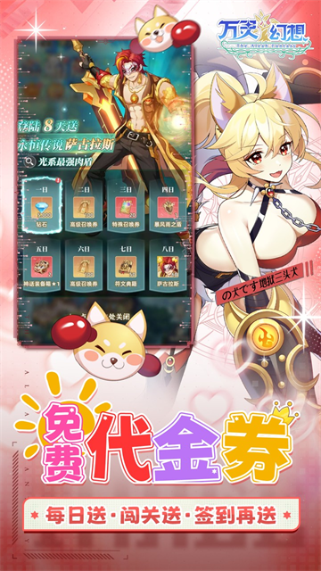 5、签到赠送代金券每日增长,玩的越久,送的越多